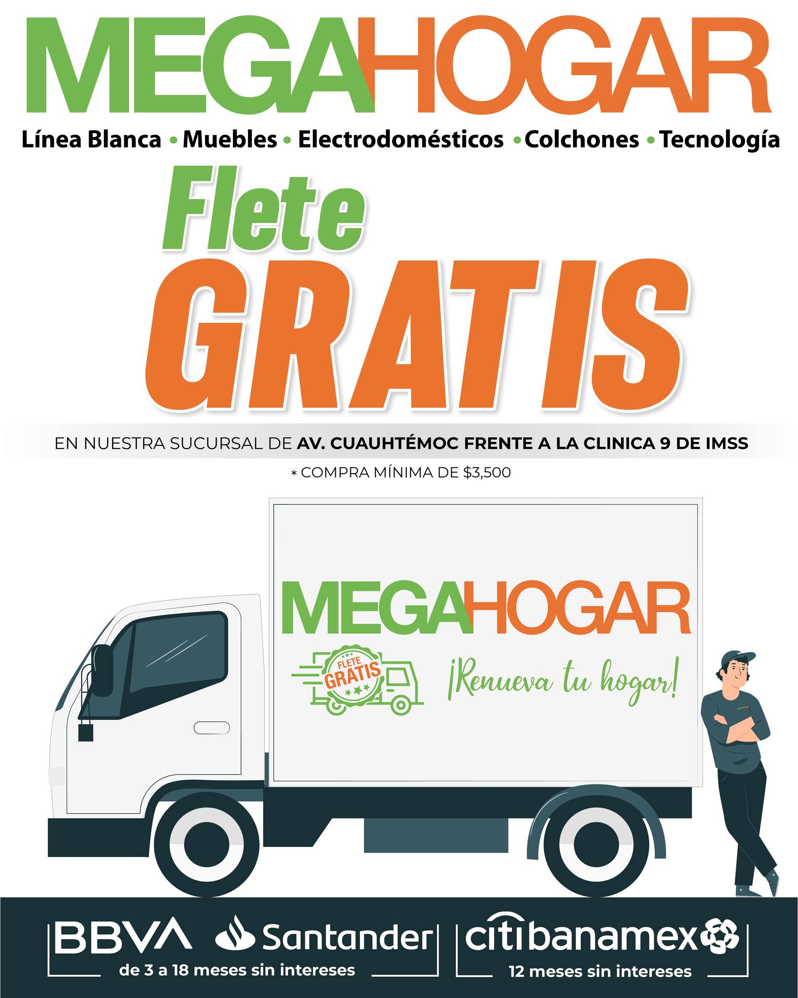 En MegaHogar te apoyamos con el flete, en compras mayores a $3,500 pesos, el flete es GRATIS.